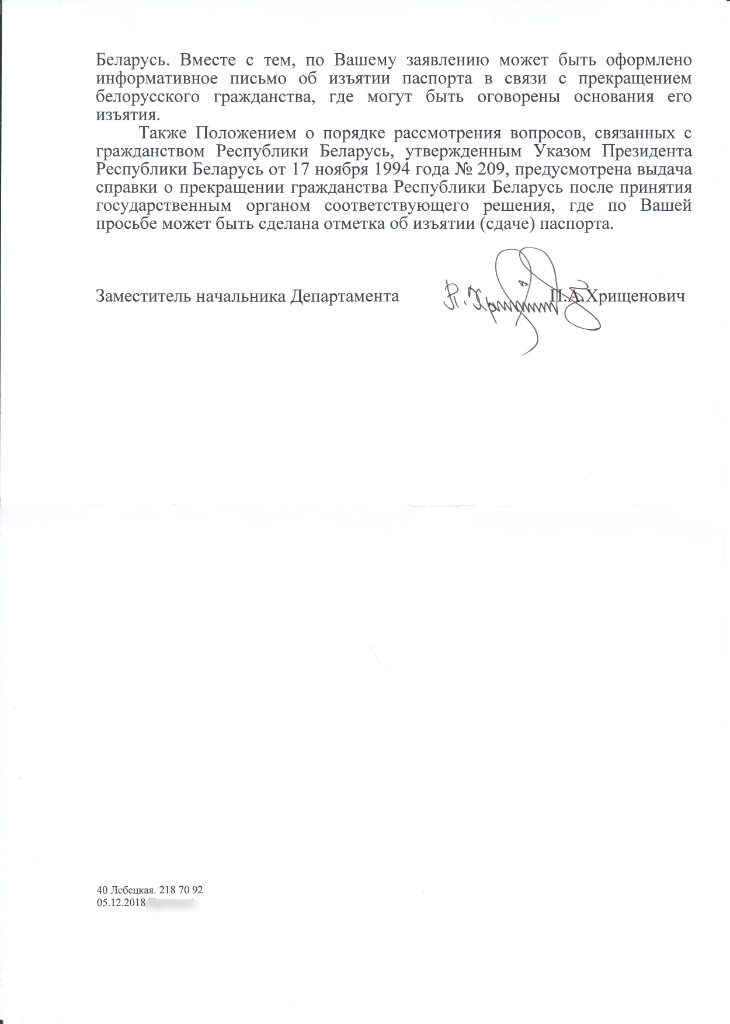 Вот ответ Депортамента МВД РБ по гражданству и миграции...