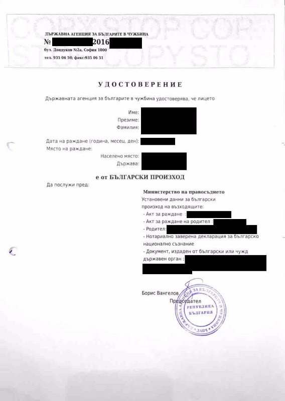 3.Документы болгары принимают только оригинальные: СОРы, копии актовых записей/"витяги".