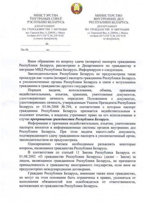 -не отменяет обязанности сдать паспорт страны предыдущего гражданства в его уполномоченный орган.