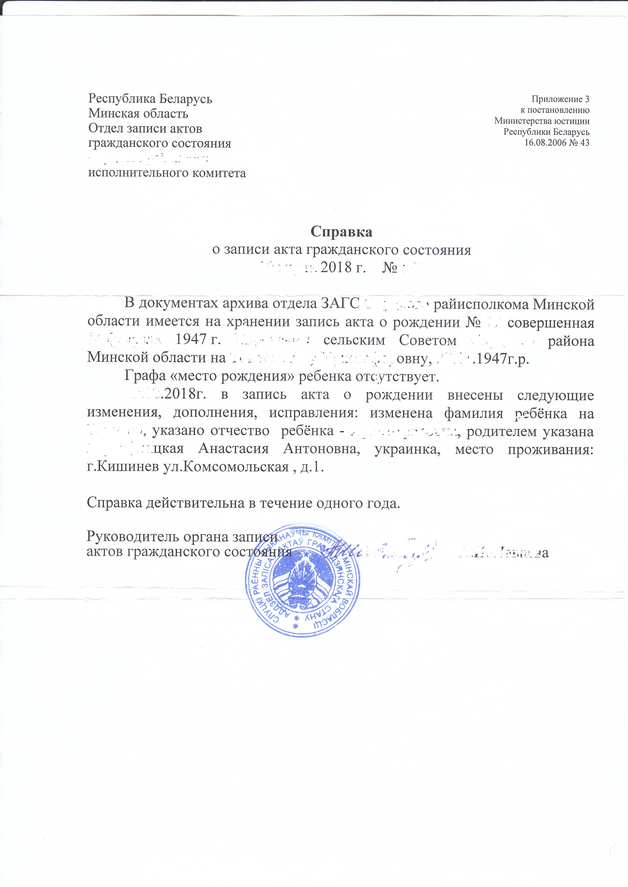 Кстати эти все ответы из архивов об отсутствии данных переписей МАССР можно по итогу предоставить в органы власти Молдовы, мол смотрите мы пытались обращаться везде куда можно и сделали всё, что смогли, но к сожалению не по нашей вине данных не сохранилось, поэтому признайте проживание наших предков на этих территориях по церковным метриках актовых записей, и справках о рождении наших предков на территории МАССР до 1940г. Я думаю, если грамотно написать такое письмо, и отправить его куда нужно (например в администрацию Президента Республики Молдова) то результат будет положительный, и в итоге всё таки дадут гражданство))