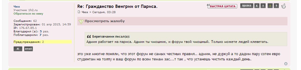 Кроме того, от данных лиц были многократные оскорбления в адрес других участников форума (не только Париса), которые оперативно удалялись.