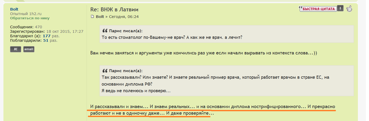 Отлично, что услышал это от Вас. Вот и расскажите: как пройти в стране ЕС нострификацию диплома врача из РФ, чтобы иметь право работать врачом в ЕС?