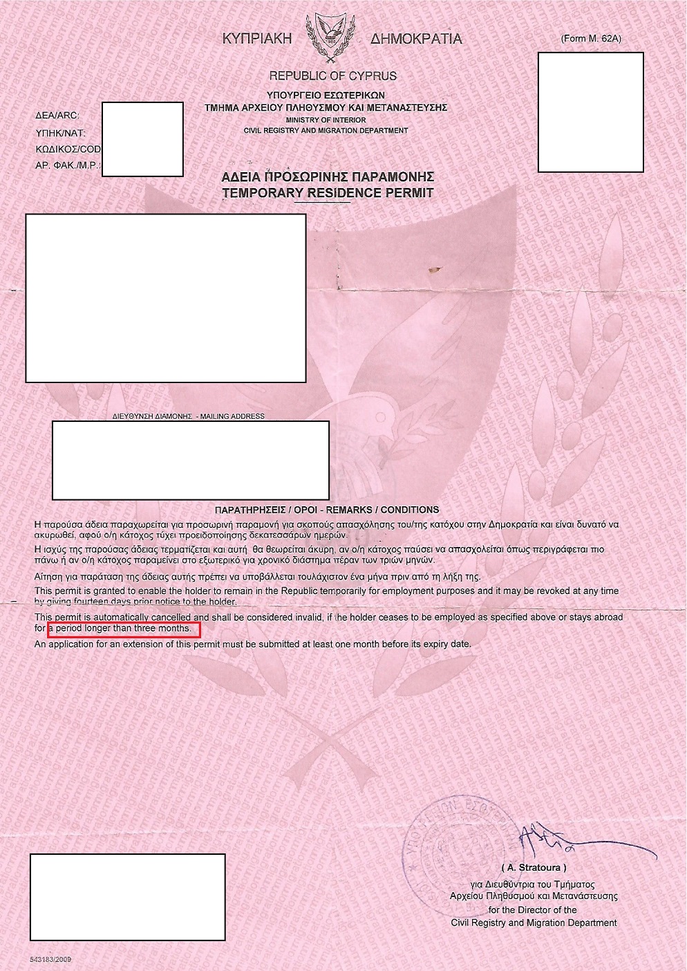 *СПРАВКА: Приведенная выше информация о трехмесячном отсутствии на острове как паричине отзыва ВНЖ соответствует 2013 году. В июне 2014 года этот срок был сокращён до 30 дней.