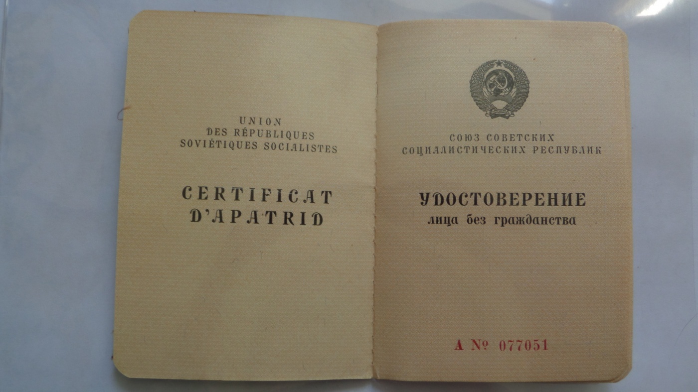 1. удостоверение лица без гражданства, советский ВНЖ выдавался всяким эмигрантам беженцам образца 1979 года.