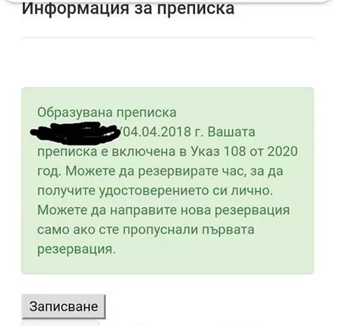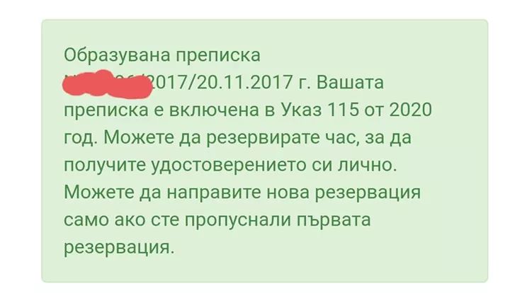 Если я правильно поняла, на сайтеhttps://publicbg.mjs.bg/BgInfo после введения номера и пина, вам высвечивает, что издадено удостоверение, которое обменивается на паспорт?