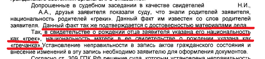 Nechaev_ писал(а): Он сам выставлял недавно решение московского суда по своим греческим предкам, где два свидетеля утверждали, что его папа и мама - греки.