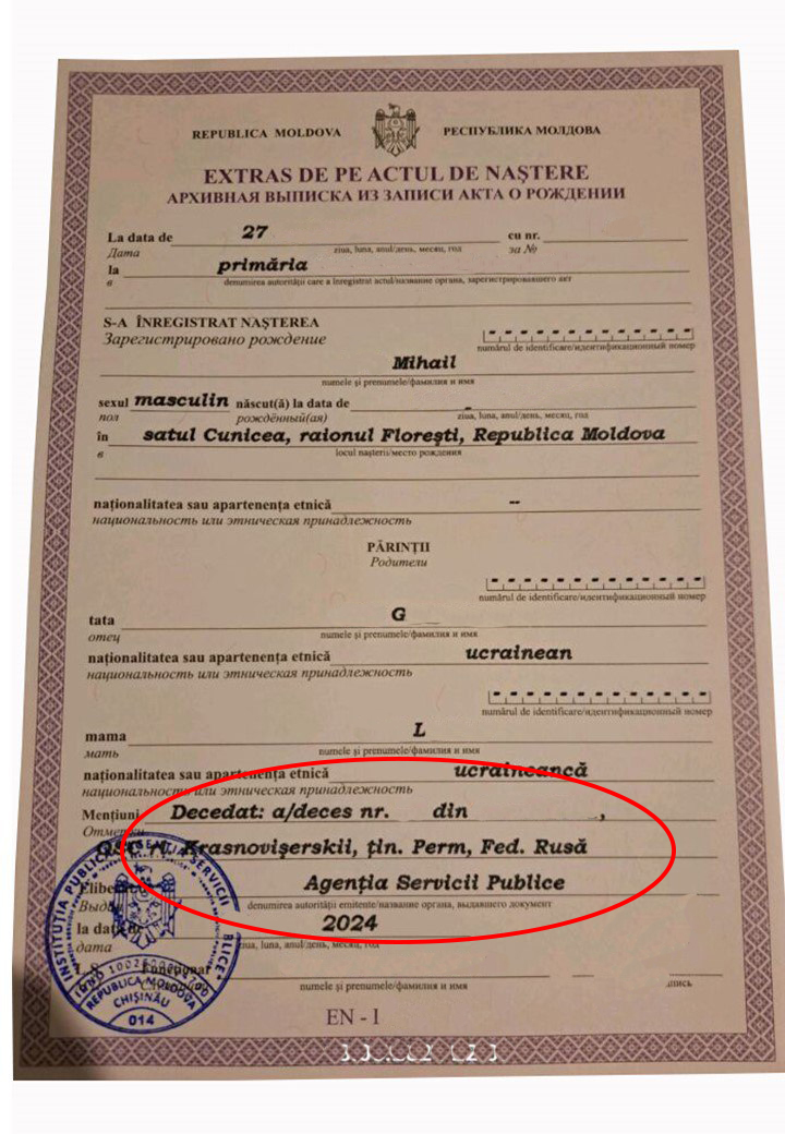По поводу дедушки: у меня на руках его архивная выписка из акта о рождении (extras de pe actul de nastere), которую я получил на основании его свидетельства о смерти из России. В АСП Молдовы указали это в его СоР (см. фото). Нужно ли приложить его СоС из России к досье, так как они его указали в его архивной выписке?