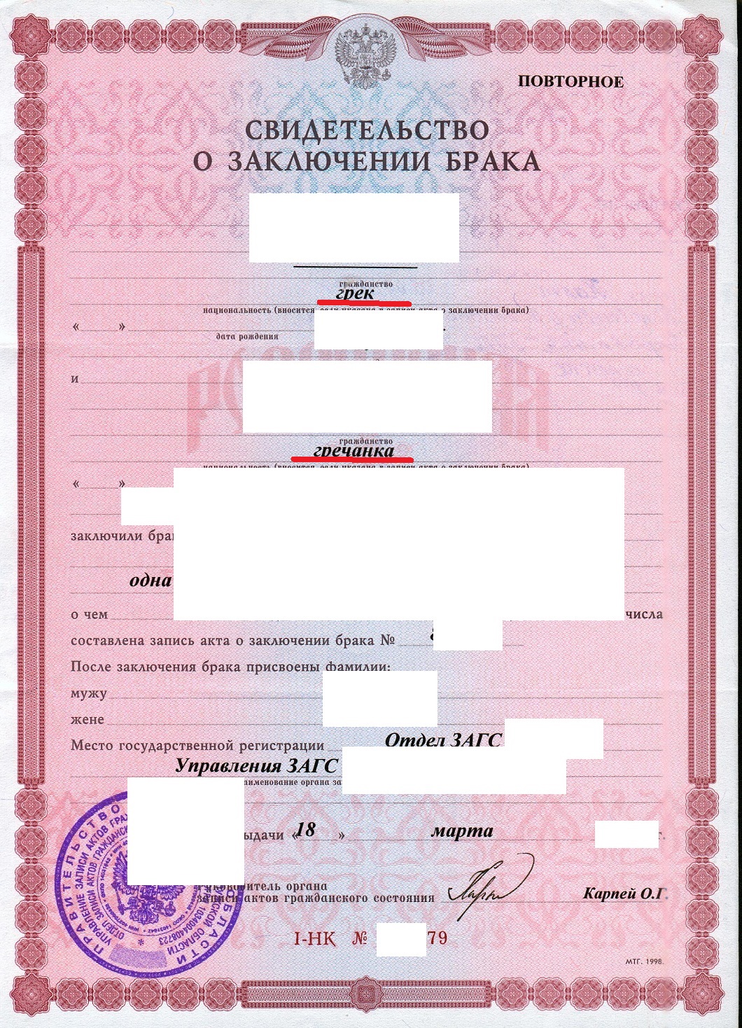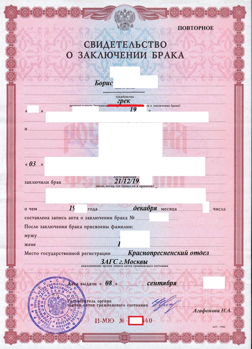 О государственной регистрации актов гражданского состояния