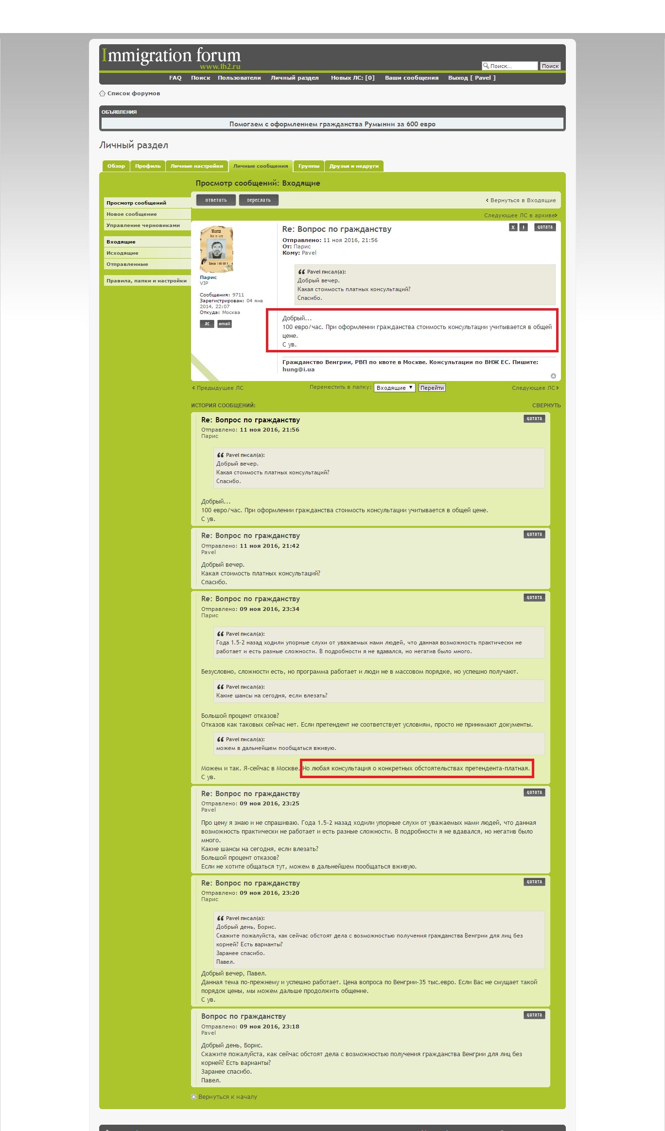 2."... мне Парис в личной переписке написал, что любая консультация платная..."