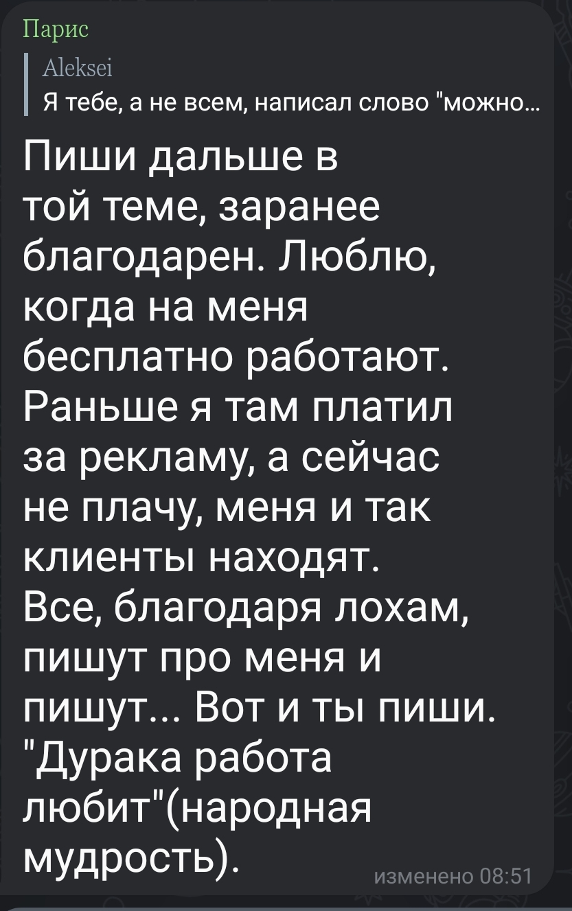 Парис писал(а):Источник цитаты также не возвращается при отказе от работы заказчиком.