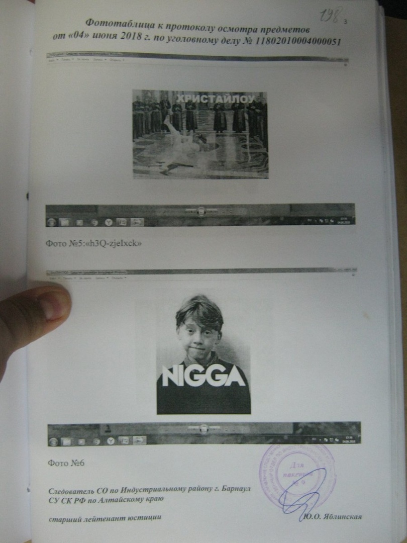 В мае этого года в дом 23-ти летней Марии из Барнаула нагрянула полиция, изъяла телефон и компьютер. Как оказалось, девушку обвиняют в "оскорблении чувств верующих" и в "возбуждении ненависти либо вражды" из-за сохраненок, которые были на ее старой странице с 2015 года. В отделении девушке заявили, что сохраняя картинки она оскорбила людей и должна в этом признаться. Также рассказали, что "до нее девочка так же выеживалась и уехала на 3 года", а через некоторое время еще и добавили в ее дело ту самую мистическую статью - "экстремизм". В апреле девушку все же запугали до того, что она подписала признание. 10 мая ее официально вписали в список экстремистов БЕЗ СУДА, а это значит, что