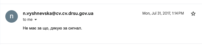 Быстро вы получили от нее ответ, письмо Baruch Levi выкладывал 01 августа 2017, а ваш ответ получен к 02 августа 2017 - феноменальная скорость на ваши запросы руководителем гос.учреждения.