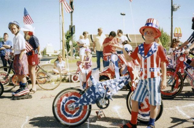 Вы ни разу не видели , как в штатах ходят в трусах с американским флагом, детей катают в колясках с американским флагом, и каждое утро перед своим домом под барабанную дробь флаги поднимают??? Как переодеваются в форму солдат времен гражданской войны и разгуливают в ней??? А, то же совсем другое, не такое совсем???