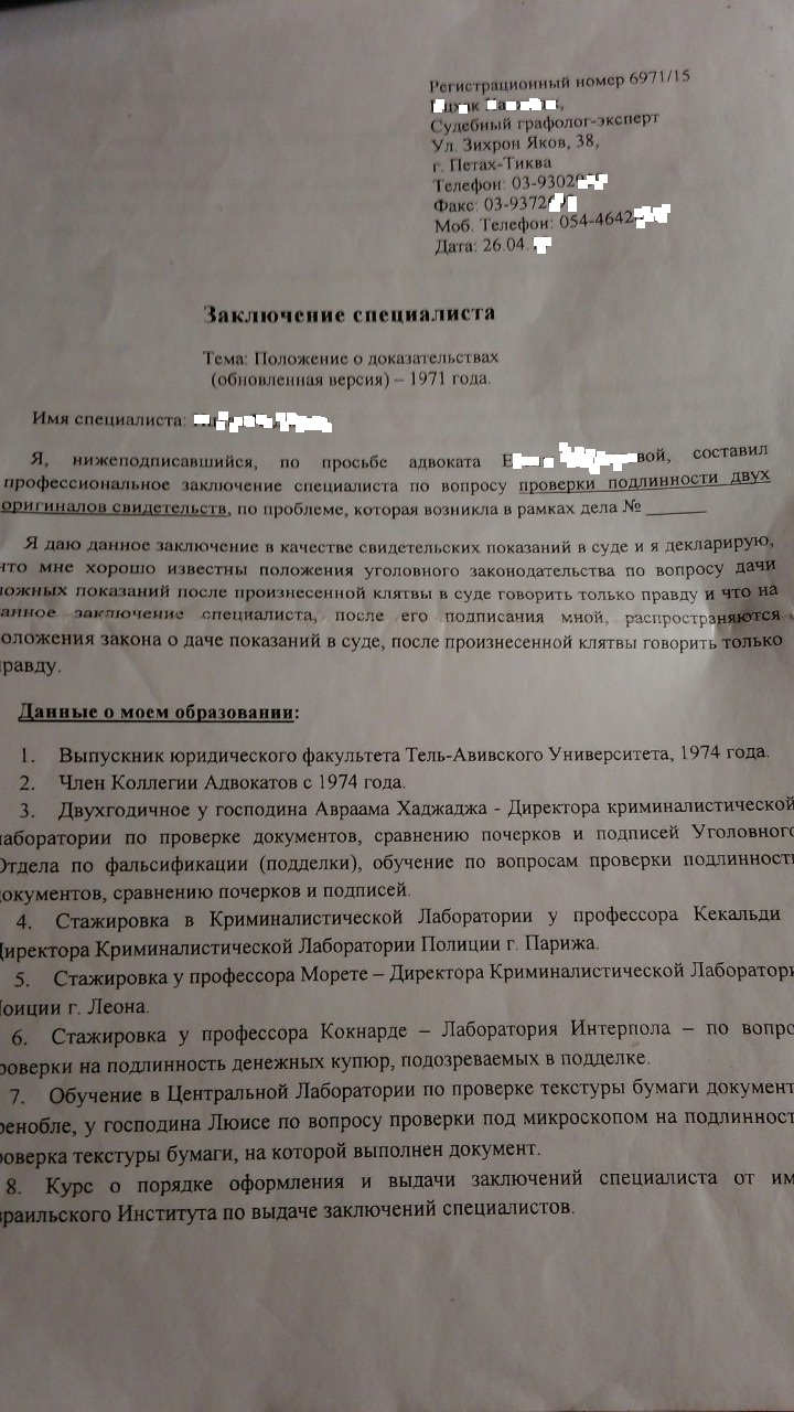 Румунар, да вывод примерный, как будто любительский или ученик делал заключение. Не думаю, что это какое то мега доказательство для Израиля. Да и не будет никто это проверять. Кто сейчас обращается, например мои знакомые. Там консул по одному взгляду на документы сделал заключение, такое же примерное как на фото. И попросил еще бумаги.