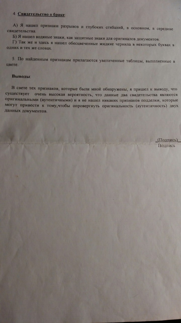 Довольно странное заключение, честно говоря… Нам была нужна такая же экспертиза для репатриации, обращались в Институт судебных экспертиз и криминалистике, что находится в Москве. Они нас все сделали, там, кстати, вся методология была прописана и придраться было не к чему. Работали с Третьяковым А.Г. – все успешно.