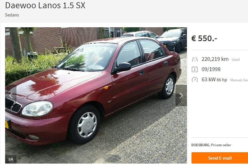Чтобы понять, отчего может возникнуть желание купить Ланос в Германии, прежде всего, необходимо сравнить цены на Ланос в Украине и Европе. В данном случае, конечно же, речь идет о б/у авто. Daewoo Lanos в Украине конца 90-начала 2000 гг. трудно отыскать дешевле $2,7-3 тысяч. При этом можно найти и пригнанный из ЕС нерастаможенный Ланос. В данном случае цена колеблется в основном в пределах $1-2 тыс.