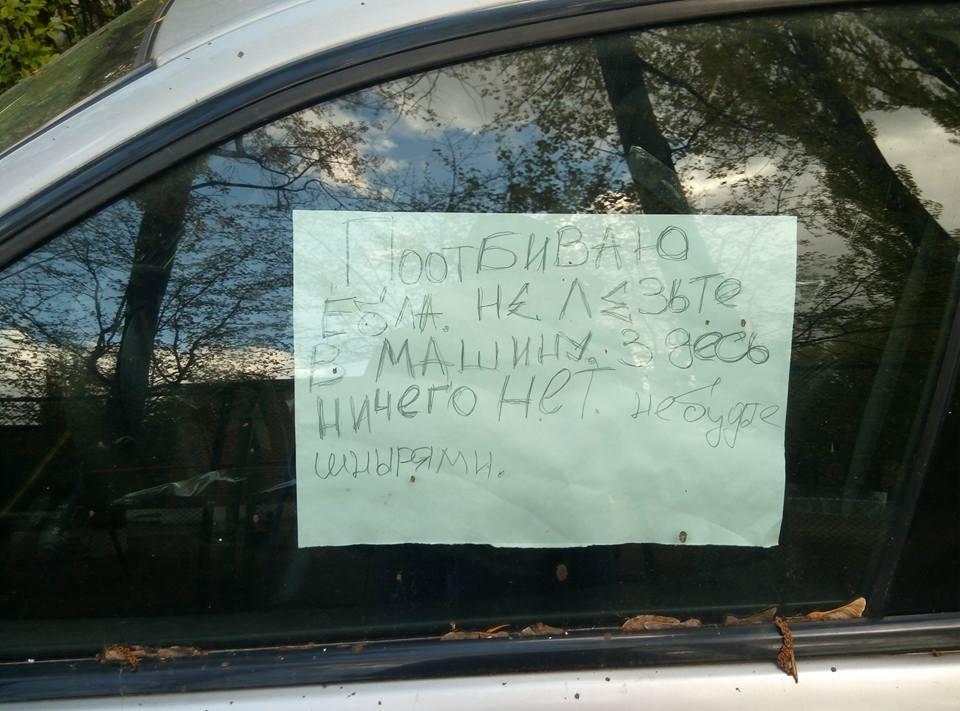 Этот Jaguar S-Type в прошлой жизни был объектом желаний многих автолюбителей. Впрочем, и сейчас есть те, кто спит и видит себя за рулем такого Ягуара. Нерастаможенный Ягуар уже не первый день «порастает мхом» в одном из киевских дворов недалеко от Караваевых дач. Судя по записке (а из нее, как и из песни, слов не выкинешь), владельца машины очень злит, что кто-то постоянно пытается залезть в нее…