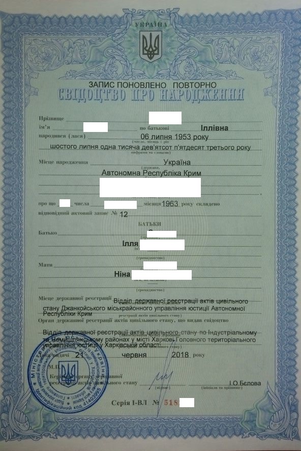 Ребят, родная сестра живёт в России. Потеряла все документы. Приехать не может. Просит помочь ей восстановить утерянное свидетельство о рождении. Дело осложняет прописка и рождение в Крыму. Может подскажете, к кому обратиться? Можно в личку. Спасибо. P.s. Сама недавно переехала из Крыма, так что знакомых особо нет... Сестра вышлет средства на восстановление.