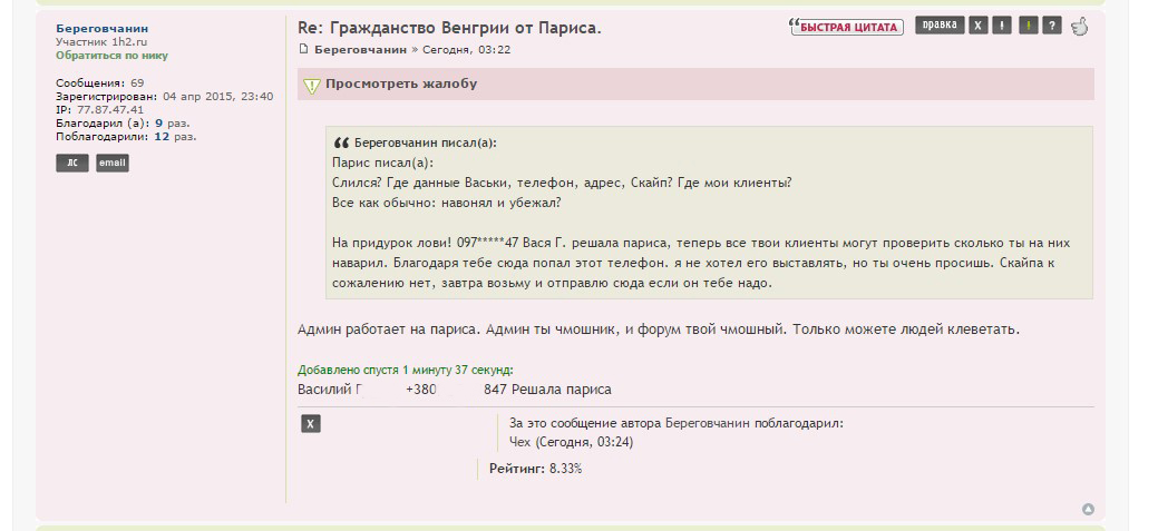 Кроме того, от данных лиц были многократные оскорбления в адрес других участников форума (не только Париса), которые оперативно удалялись.