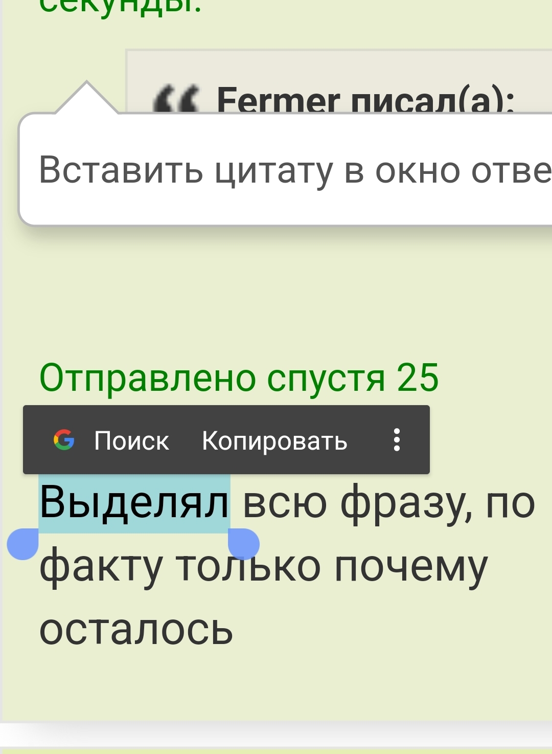 Bezviz писал(а):Источник цитаты телефона, то надо после выделения