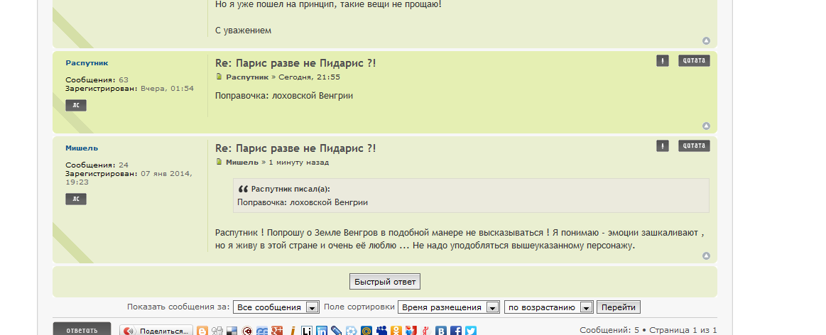 А остальным Вашим коллегам рекомендую не нарушать правила форума, написанием нецензурных оскорблений в адрес других участников форума и "играть" с УК РФ, написанием националистических оскорблений и угроз убийством или физической расправой другим участникам форума.