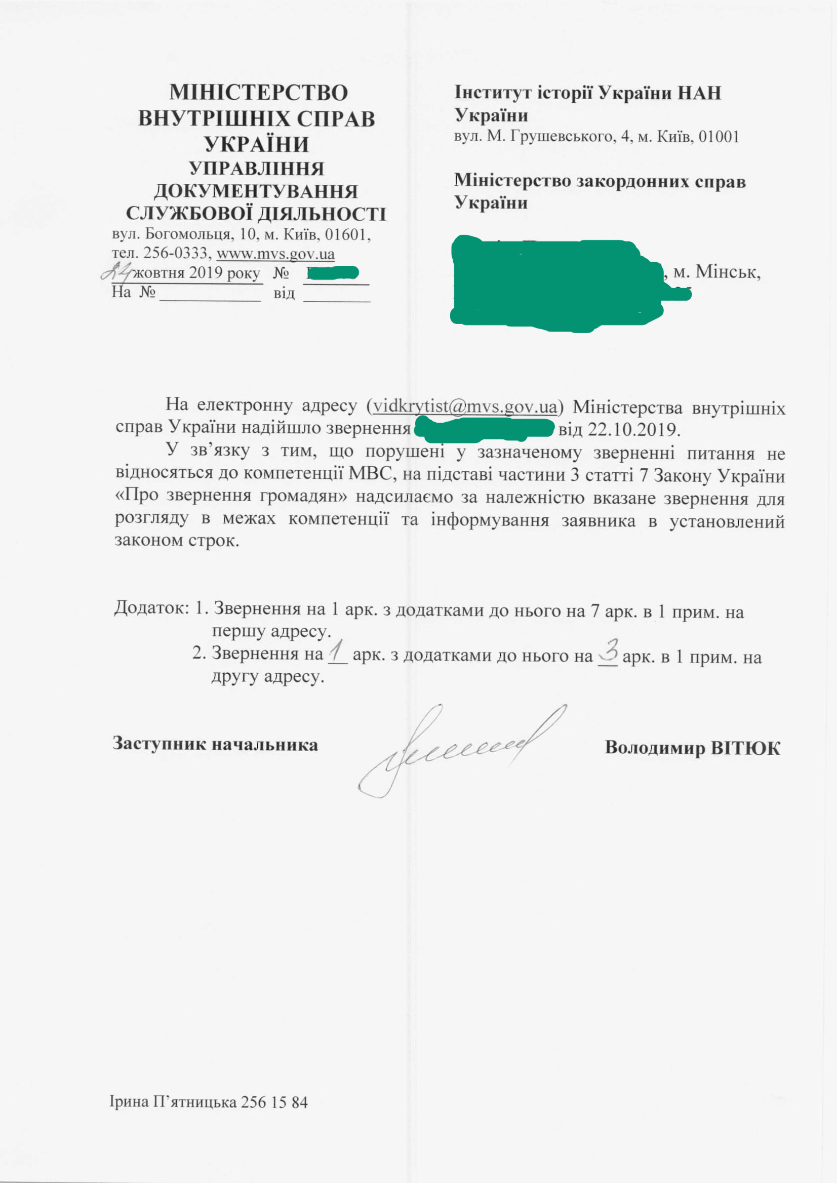МВД перенаправило также моё заявление в Институт Истории Украины, ждём следующих...