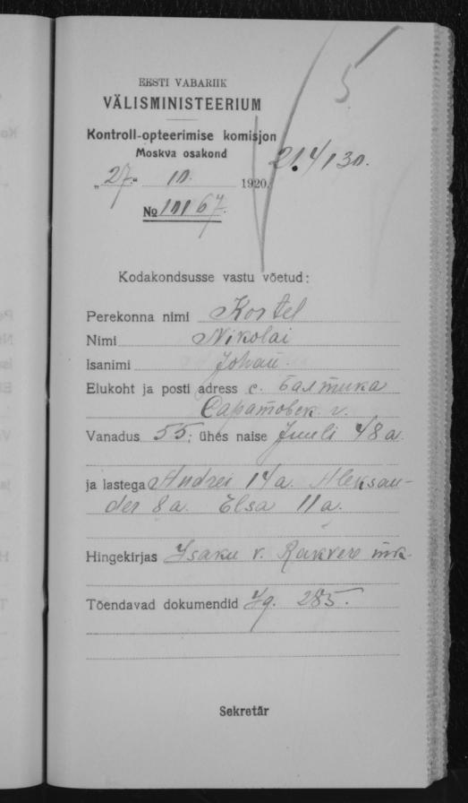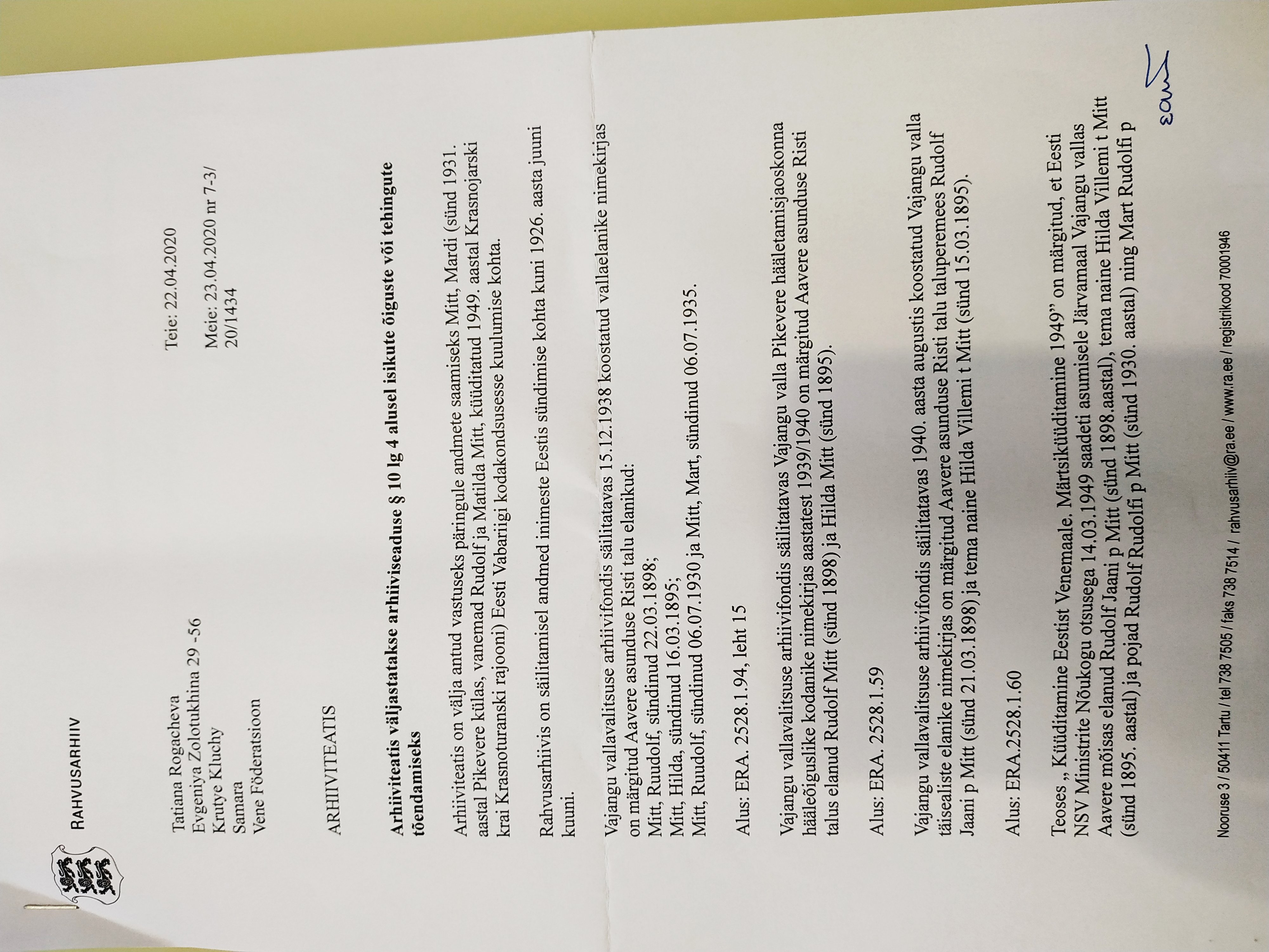Belikov Anton писал(а):Источник цитаты У вас имеются доказательства проживания ваших предков на территории Эстонии после даты 27.10.1920?