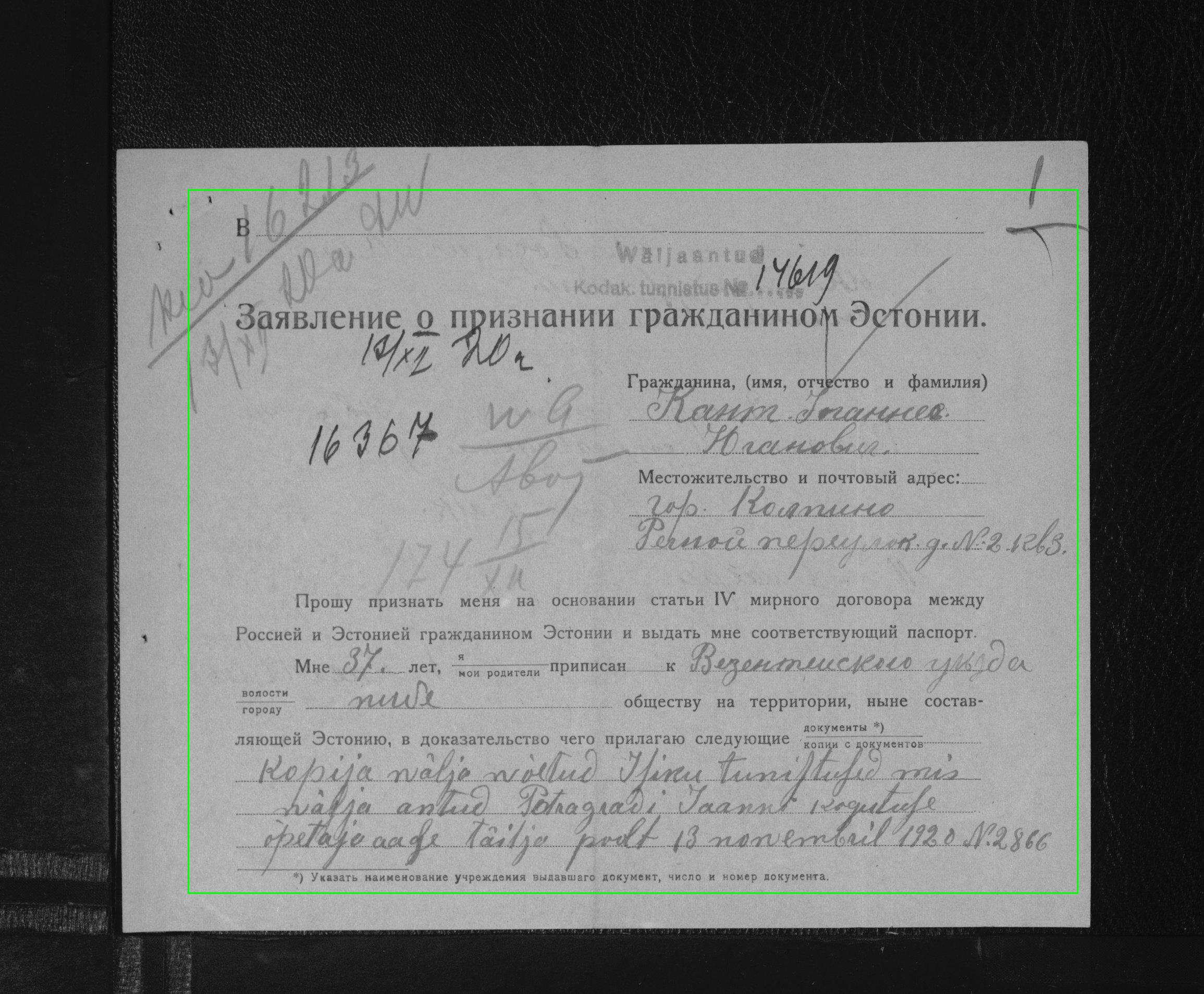 Место проживания прапрадеда прослеживается более-менее из справки из архива. Родился и жил в Пярну и потом в Ярвоканди. Его жена, мама пробабушки, полагаю жила с ним (по ней запрос в архив не делал). В Ленинграде прабабушка жила именно с теткой, отец и мать оставались в Эстонии. Если прапрадед получил гражданство ЭР в то время, как его несовершеннолетняя дочь (моя прабабушка) проживала за границей, не означает, что и она тоже становится гражданкой ЭР автоматически?