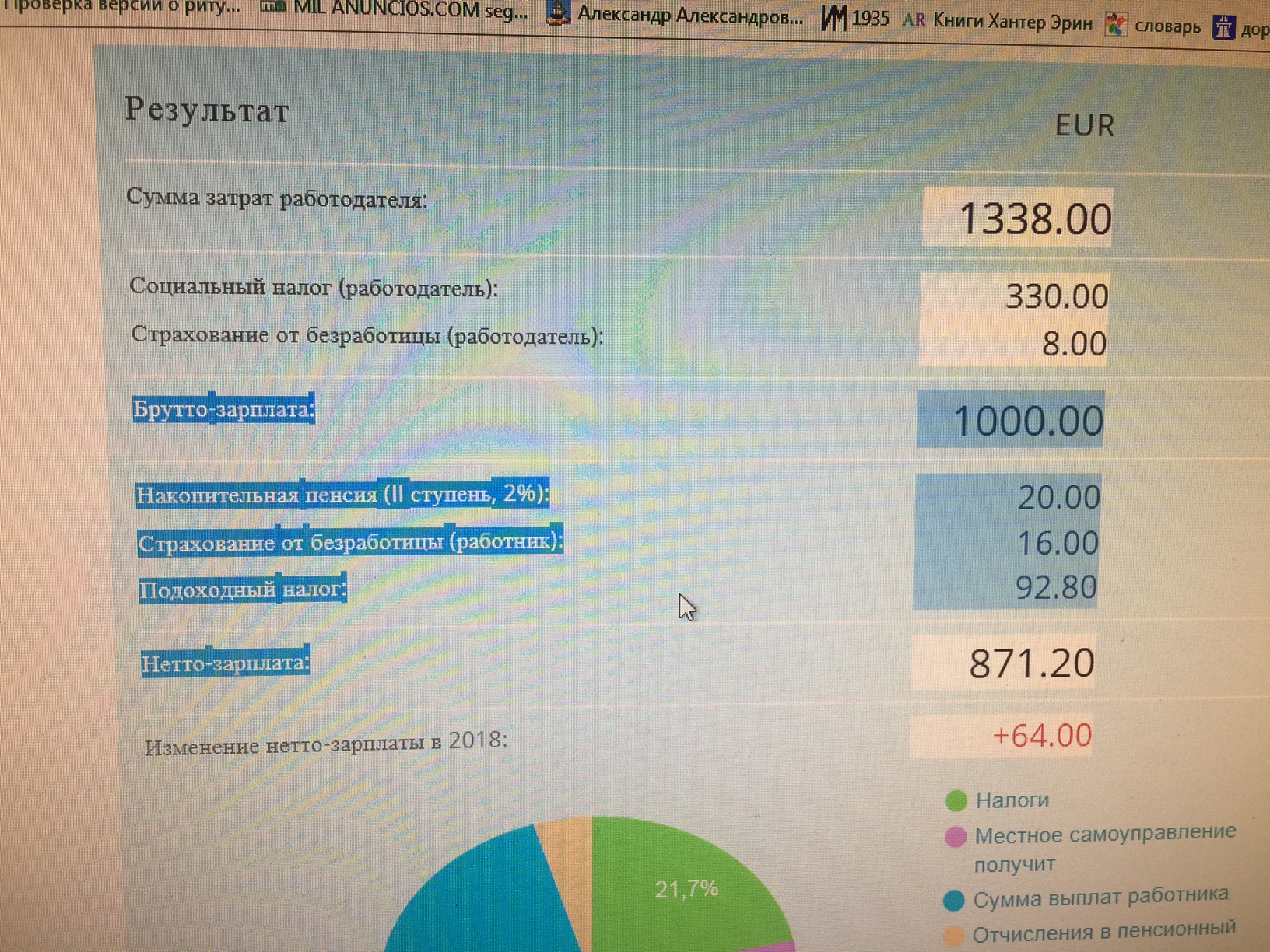 Нетто-зарплата: 871,20 евро