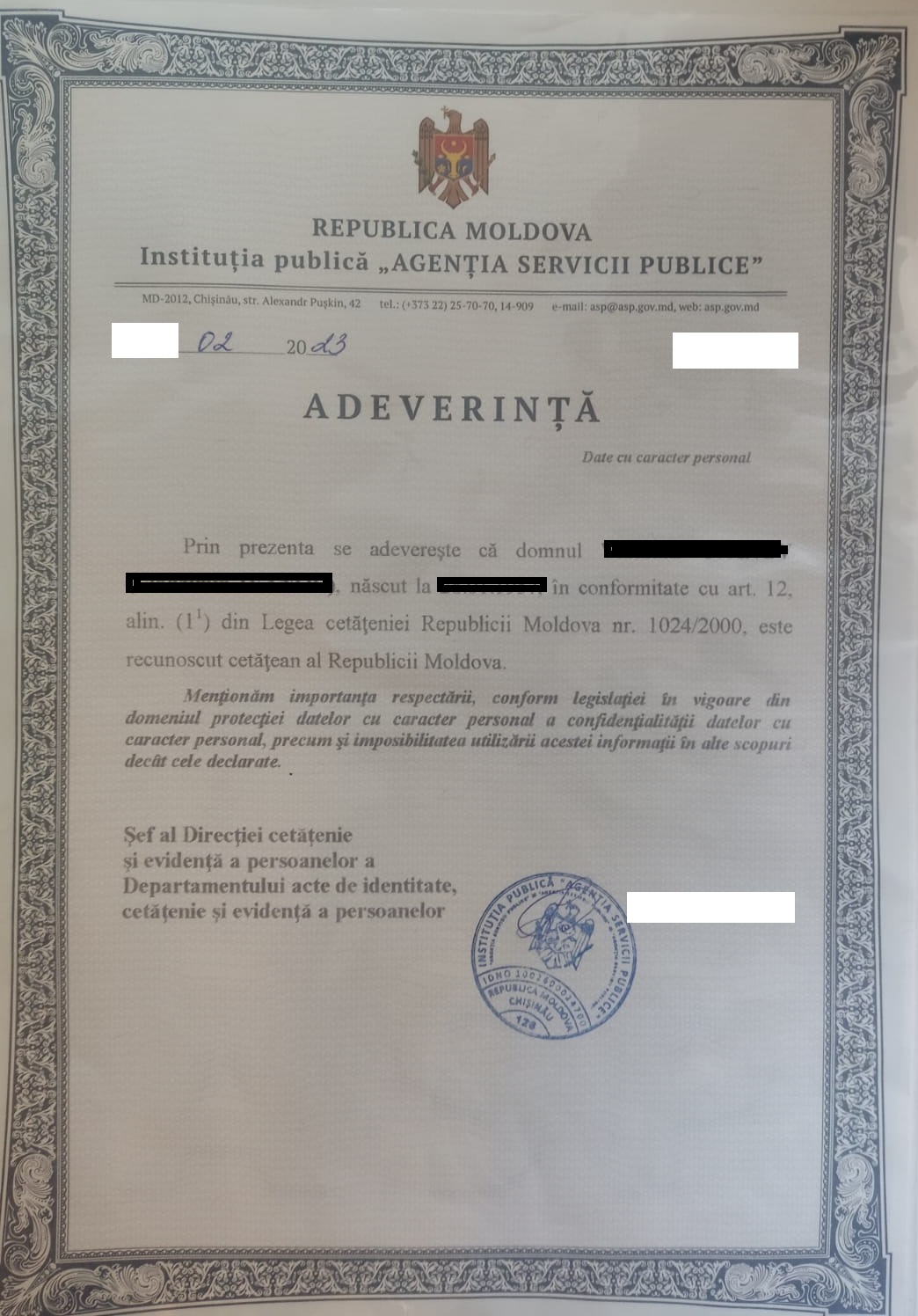 Имеются вот такой комплект Молдавских документов : СОР, СОБ , два приказа о гражданстве (см фото).