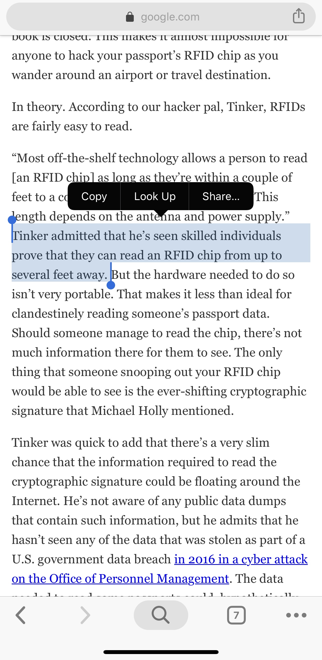 Чип может быть считан с расстояния 25 футов.