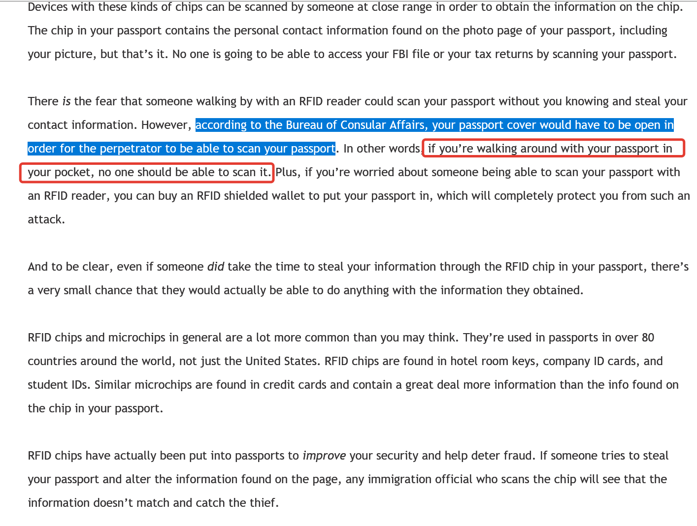 Пограничники сканируют только страницу с чипом, там обложка вообще на это не влияет же, просто видимо чтобы ничего лишнего не передавали)