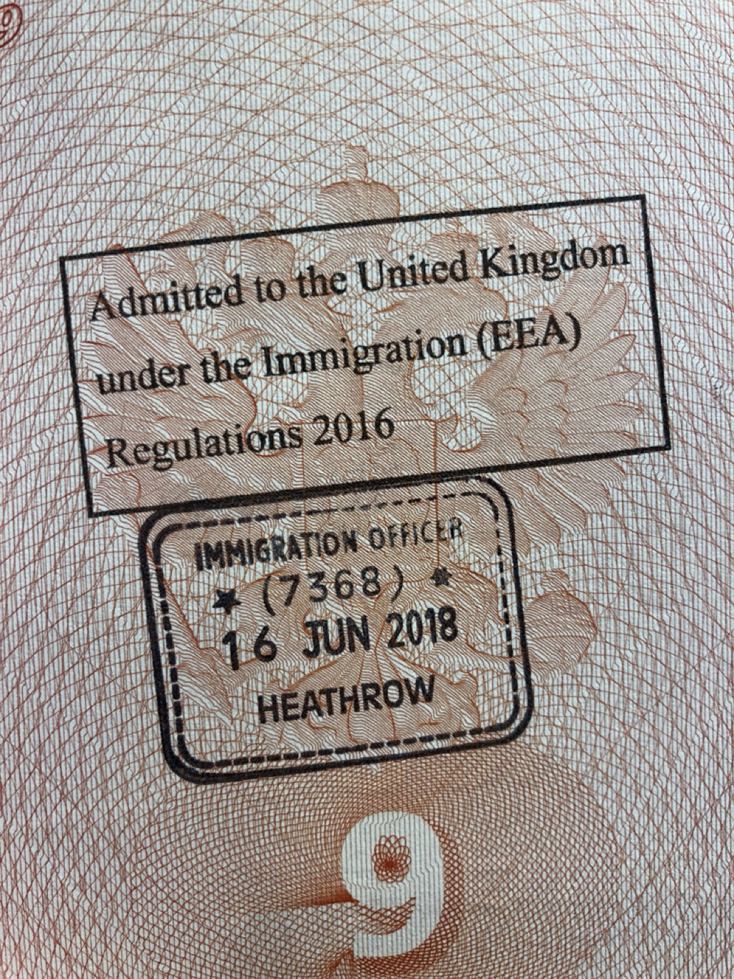При повторном въезде в Гатвике 30.06.2018 офицер начала издалека. Держа двумя пальцами правой руки розовую эстонскую резидентскую карточку моей супруги, она обратилась ко мне со следующим текстом: