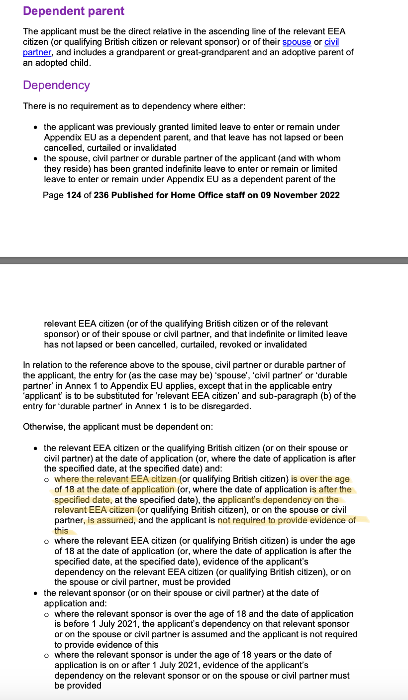 Там в правилах было разное когда dependency assumed а когда не assumed. Вроде как, опаздуны с правом податься (мои dependent parents) должны были доказывать свою от меня dependency. Заявления уже в работе, но я тут решил свежее обновление правил перечитать, и вот смотрю на вот эту часть. Вроде здесь английским по белому сказано, что если я старше 18 и заявление подаётся after the specified date, то dependency is assumed. Подскажите, где тут собака зарылась?