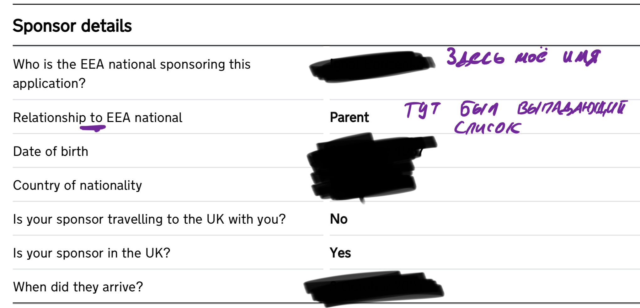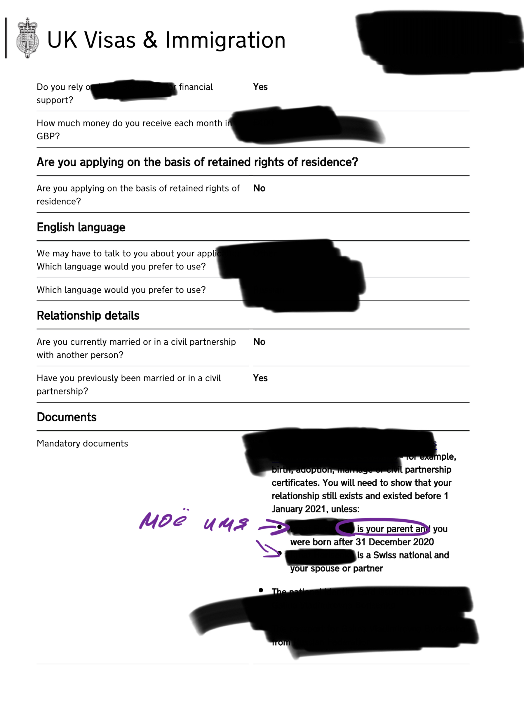 Там просто написано, что нужно предоставить документы, которые подтверждают отношения заявителя со спонсором. Но плохо видно, потому что первая часть замазана.