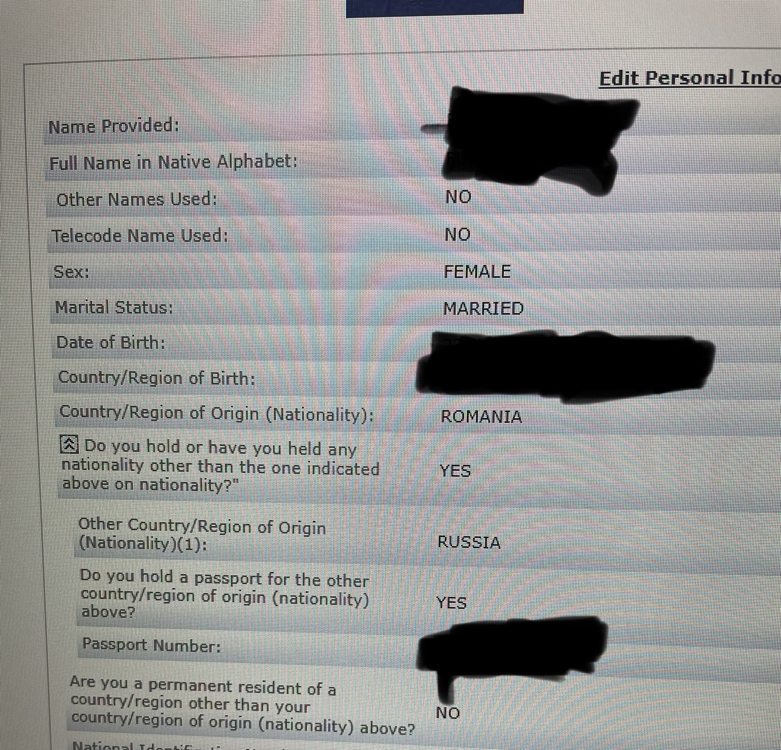 Еще день и город рождения понятно, но еще требуют написать Country/region of origin (nationality) - здесь писать страна рождения? Или Румынию писать?