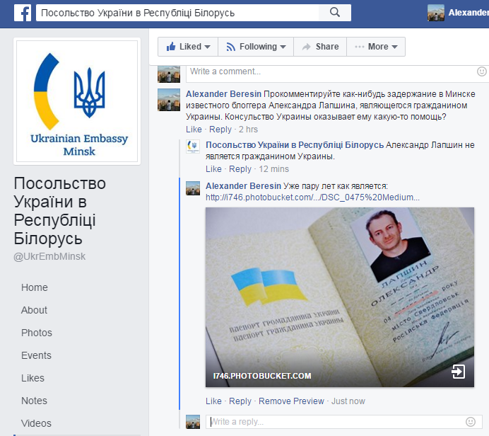 Посольство Украины в РБ уже заявило, что никакого Лапшина они не знают. Укр паспорт не помог.AlexanderHaifa писал(а):отреагируют официальные представители Великой Украины.Мне тоже интересно это поглядеть.