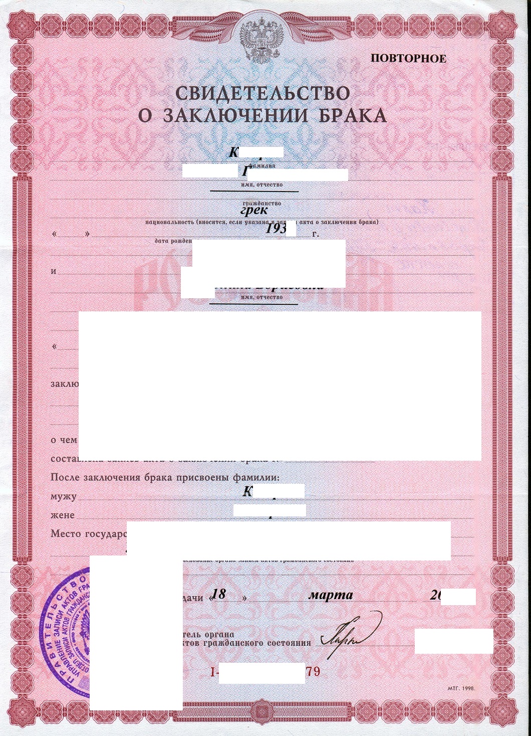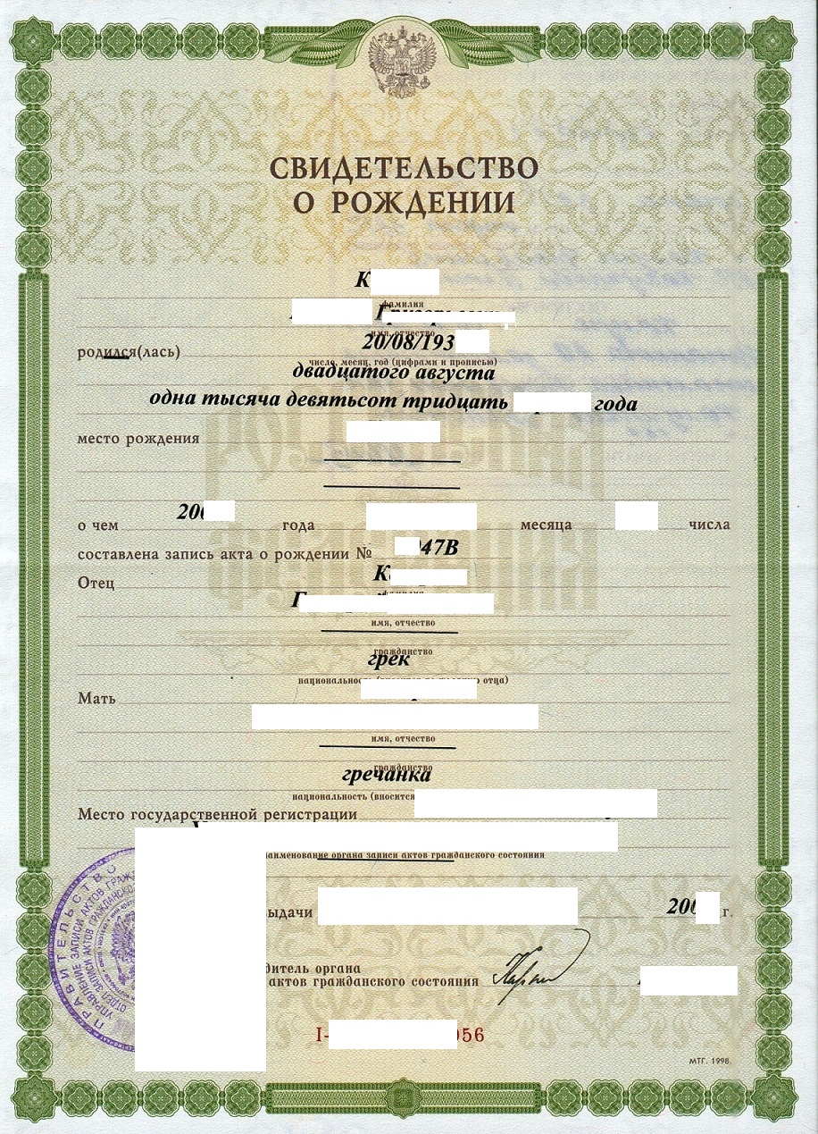 Haliph писал(а):Источник цитаты ..актовая запись создана 193х году. Значит она не восстанавливалась ни через какие то суды. И получить такой документ можно только на живого человека.