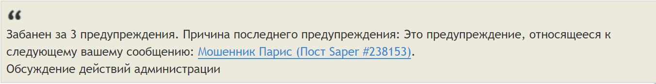 Форум видел много кидал, слившихся решал и пр. Всякие там пановы, илоны,скарбники-татуры. Но там было все ясно. В данном случае, что то не похоже на кидок. Подождем, может Парис объяснится.