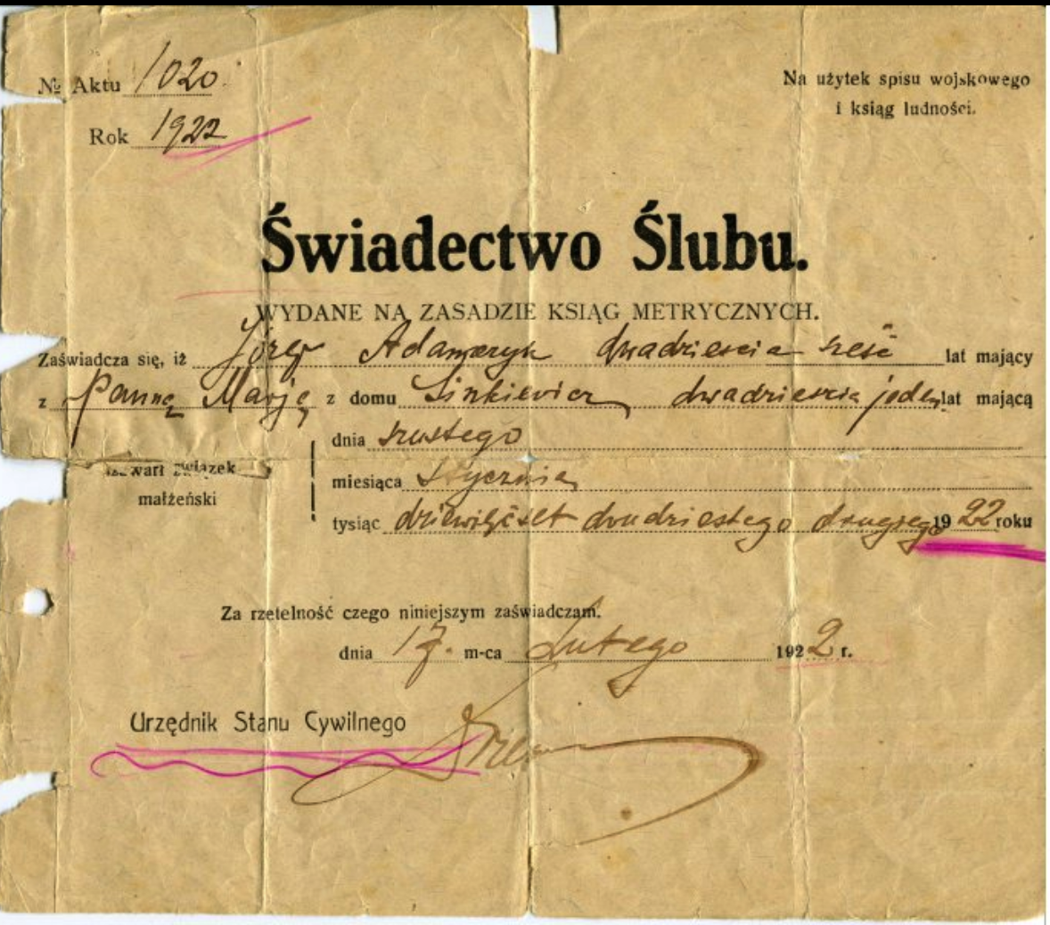 NewOne, моя очередная Вам благодарность, но что же это получается: доказать принадлежность к польскому народу, а именно польскую национальность, имея на руках СОБ, согласно польским законным требованиям невозможно? Остаются только варианты с СОБ, с 1904 года по 1935 года. Но указывалась ли национальность на свидетельствах о рождении? На что вообще рассчитывали поляки, сочиняя свой закон?