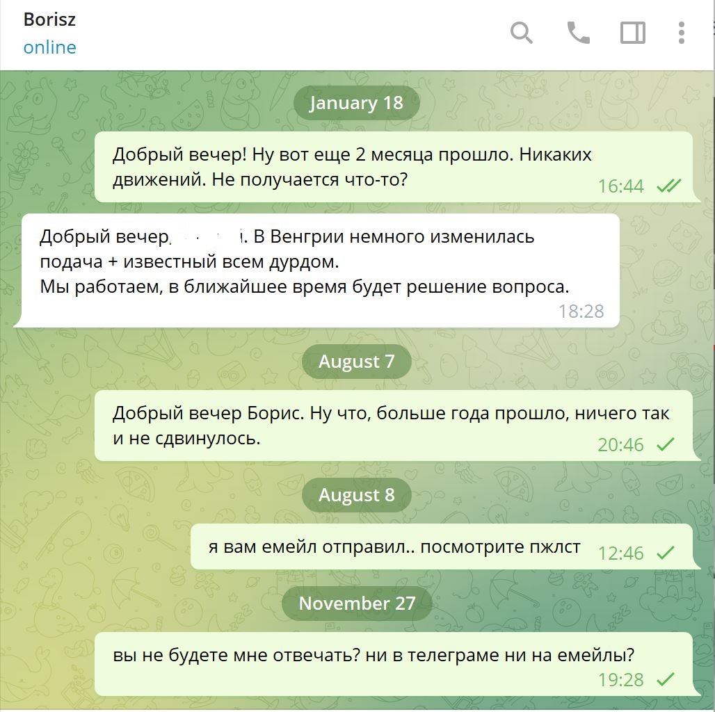 Интересно как вы себе представляете подобную "фиксацию" ? Торжественно клянусь и подписываюсь изготовить документ о наличии предков (которых по факту нет)рожденных на нужной для получения гр-ва Венгрии территории за что и получил предопату в сумме хххх0000 руб ?? ))) И вообще "имярек" П, никакой более-менее юридически грамотный документ" никогда бы и не подписал. Просто был человек который размазывал всех конкурентов , реальных кидал типа Думчака , отчасти справедливо и всегда давал понять , что вот он - истинный, да дорогой, но безотказный способ оформления венгерского гражданства, все делает грамотно с восстановлением актовых записей и т.д. Но как видно лимит легитимности исчерпан, на финал остался лишь банальный кидок и уход небытие..)) Значит можно констатировать, что с темой получения венгерского гражданства "окольными" путями можно ставить жирную точку. Топиксартер вряд ли "конкурент" или очернитель (смысл ?) , скорее всего дело обстоит именно так как он и описывает. При этом сам "маэстро" это никак не комментирует и это отягчающее обстоятельство , так как все знают, что это совсем не в его правилах. ИМХО.
